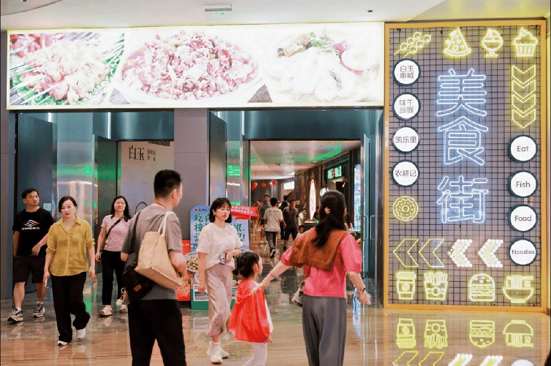 除此之外,公共区域休闲氛围的打造、灯光氛围的提升和FOOD TIME美食街场景社交化餐饮的招调,进一步强化了场景化的品牌运营。